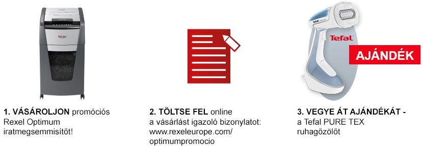 Vásároljon REXEL Optimum automata iratmegsemmisítőt és most Tefal PURE TEX ruhagőzölőt kaphat mellé ajándékba!