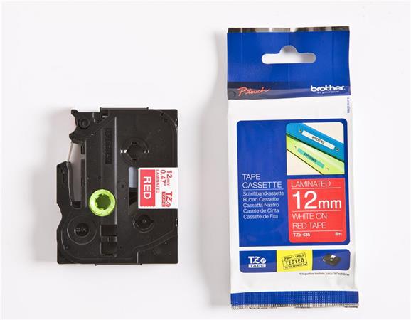 Feliratozógép szalag, 12 mm x 8 m, BROTHER, "TZe-435", piros-fehér