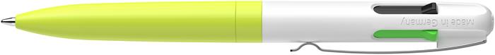 Golyóstoll, 0,5 mm, nyomógombos, négyszínű, SCHNEIDER "Take 4 Neon", sárga-fehér
