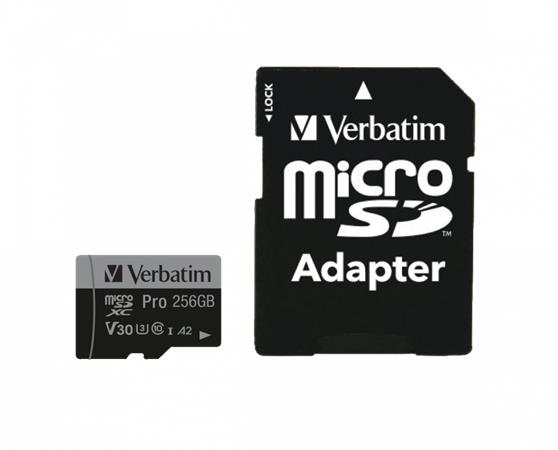 Memóriakártya, microSDXC, 256GB, CL10/U3/A2, 100/90 MB/s, adapter, VERBATIM "PRO"