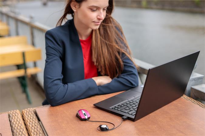 A visszahúzható USB-kábel és hordozható kialakítás miatt a Go Mini utazó optikai egér könnyen elfér akár zsebben vagy a laptop táskában.