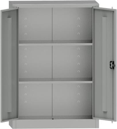 Minőségi acéllemezből készített kétajtós 2 polcos fémszekrény általános használatra.