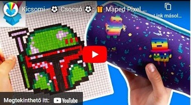 A MAPED „Pixel Party” kollekciót a videójátékokat kedvelő kislányok és kisfiúk ízlésére formáltuk. Kicsomi asztalán minden pixelmintába borult, amint megpillantotta a hatalmas dobozt, tele a kollekció termékeivel. Szinte minden forma, állat megalkotható pixelekből, négyzetrácsos lapra rajzolva pedig igazán könnyű dolgunk van.