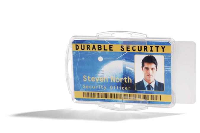 KezdőlapIrodaszerekIrodai kiegészítőkNévkitűzők, karszalagokAzonosítókártya-tartó, 2 kártyához, nyitott, DURABLE, áttetsző