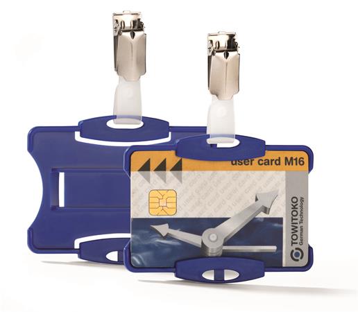 Azonosítókártya-tartó, 54x85 mm, csiptetővel, DURABLE, kék