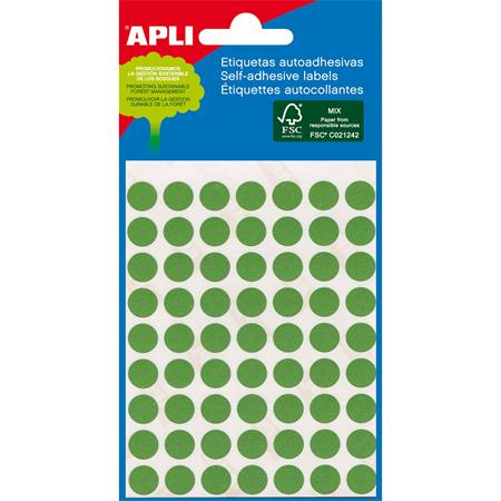 Etikett, 8 mm kör, kézzel írható, színes, APLI, zöld, 288 etikett/csomag