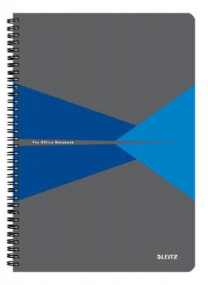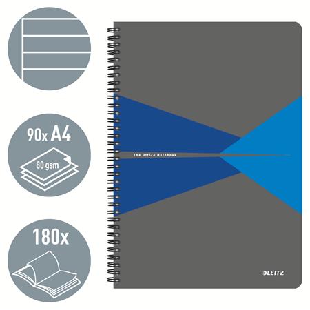 Spirálfüzet, A4, vonalas, 90 lap, PP borító, LEITZ "Office", szürke-kék