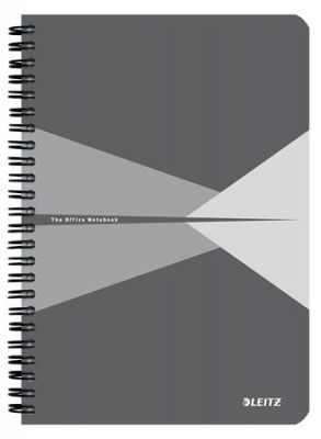 Spirálfüzet, A5, kockás, 90 lap, laminált karton borító, LEITZ "Office", szürke