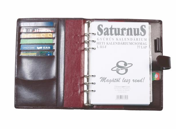 Kalendárium, gyűrűs, betétlapokkal, "M", újrahasznosított bőr, SATURNUS, "418", fekete