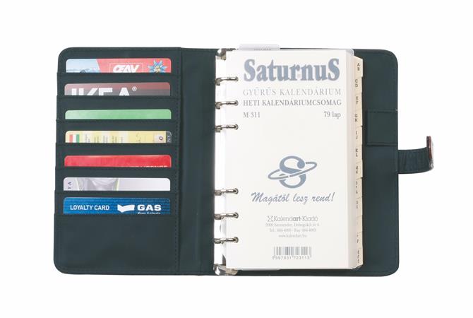 Kalendárium, gyűrűs, betétlapokkal, "S", műbőr, SATURNUS, "437", fekete