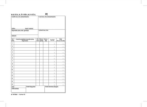 KezdőlapIrodaszerekIrodai papíráruNyomtatványokNyomtatvány, szállítólevél, 25x4, A5, VICTORIA PAPER "B.10-70", 10 tömb/csomag