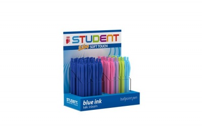 Golyóstoll display, 0,7 mm, nyomógombos, vegyes tolltest, ICO "Student", kék