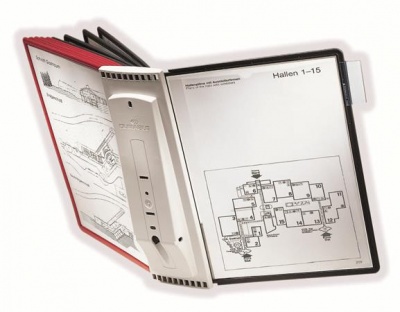 Bemutatótábla tartó, fali, 10 db bemutatótáblával, DURABLE "SHERPA WALL", piros
