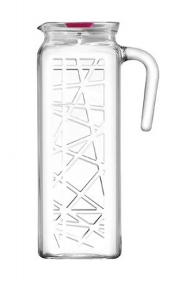 Üvegkancsó tetővel, szögletes, 1l